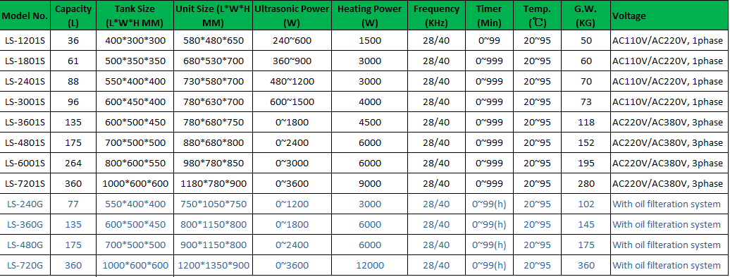 For all Limplus Ultrasonic Cleaning Machines, we provide: